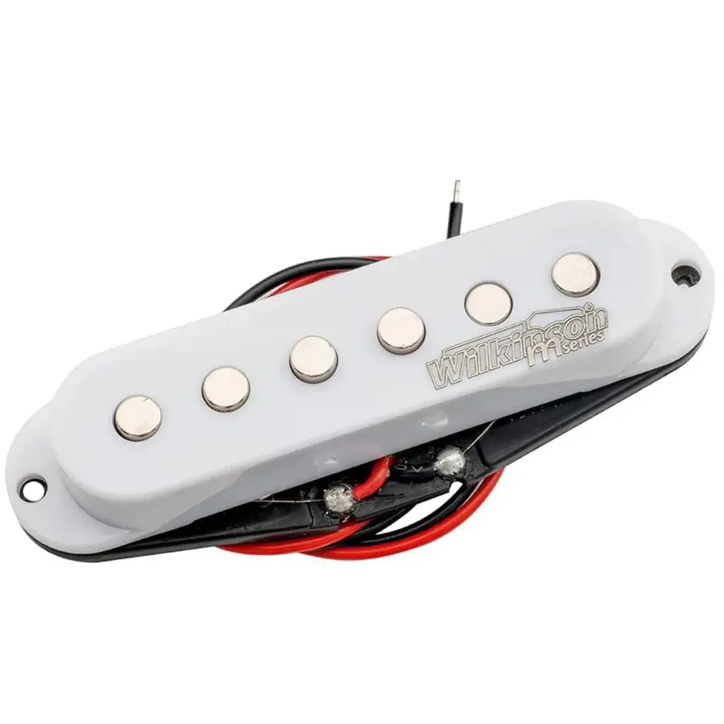 En Stratocaster pickup för montering i mitten-positionen på en elgitarr. Fjädrar och skruvar är inkluderat.