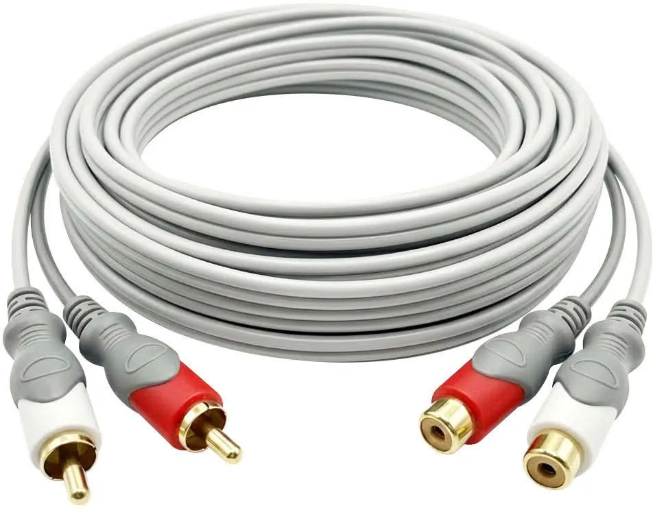 Kabel, dubbel, 2xRCA hane till 2xRCA hona, guldpläterad, grå, 3m